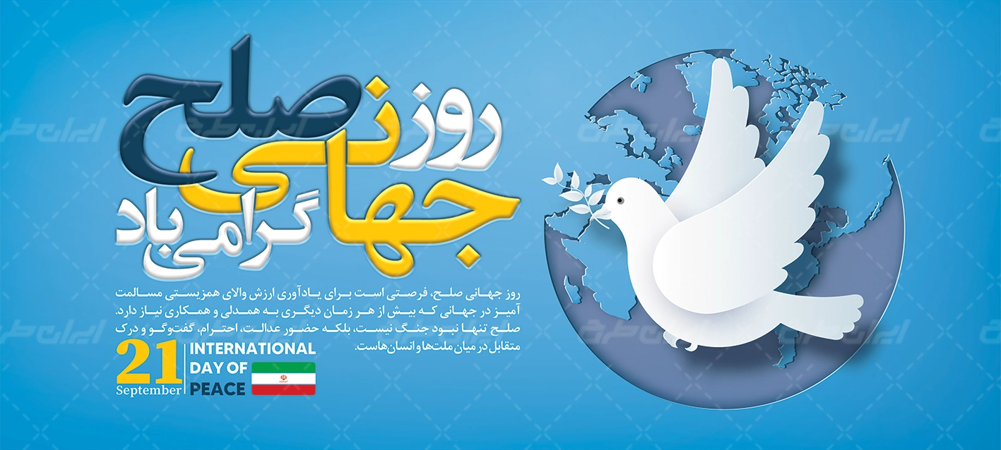 طرح بنر گرامیداشت روز جهانی صلح، توسط تیم با تجربه ایران طرح جهت استفاده کاربران سایت طراحی و به صورت لایه باز در دسترس کاربران قرار گرفته است.