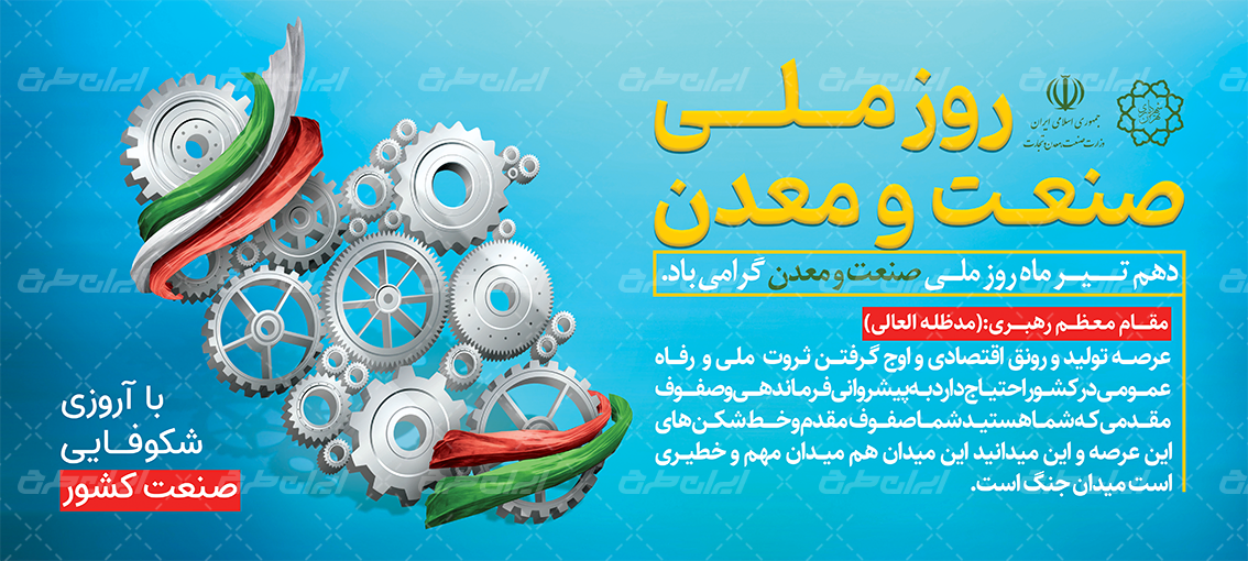 بنر روز صنعت و معدن، توسط تیم حرفه ای ایران طرح جهت استفاده کاربران سایت طراحی و به صورت لایه باز در دسترس کاربران قرار گرفته است.