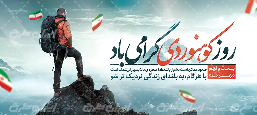 بنر لایه باز روز ملی کوهنورد، توسط تیم با تجربه ایران طرح جهت استفاده کاربران سایت طراحی و به صورت لایه باز در دسترس کاربران قرار گرفته است.