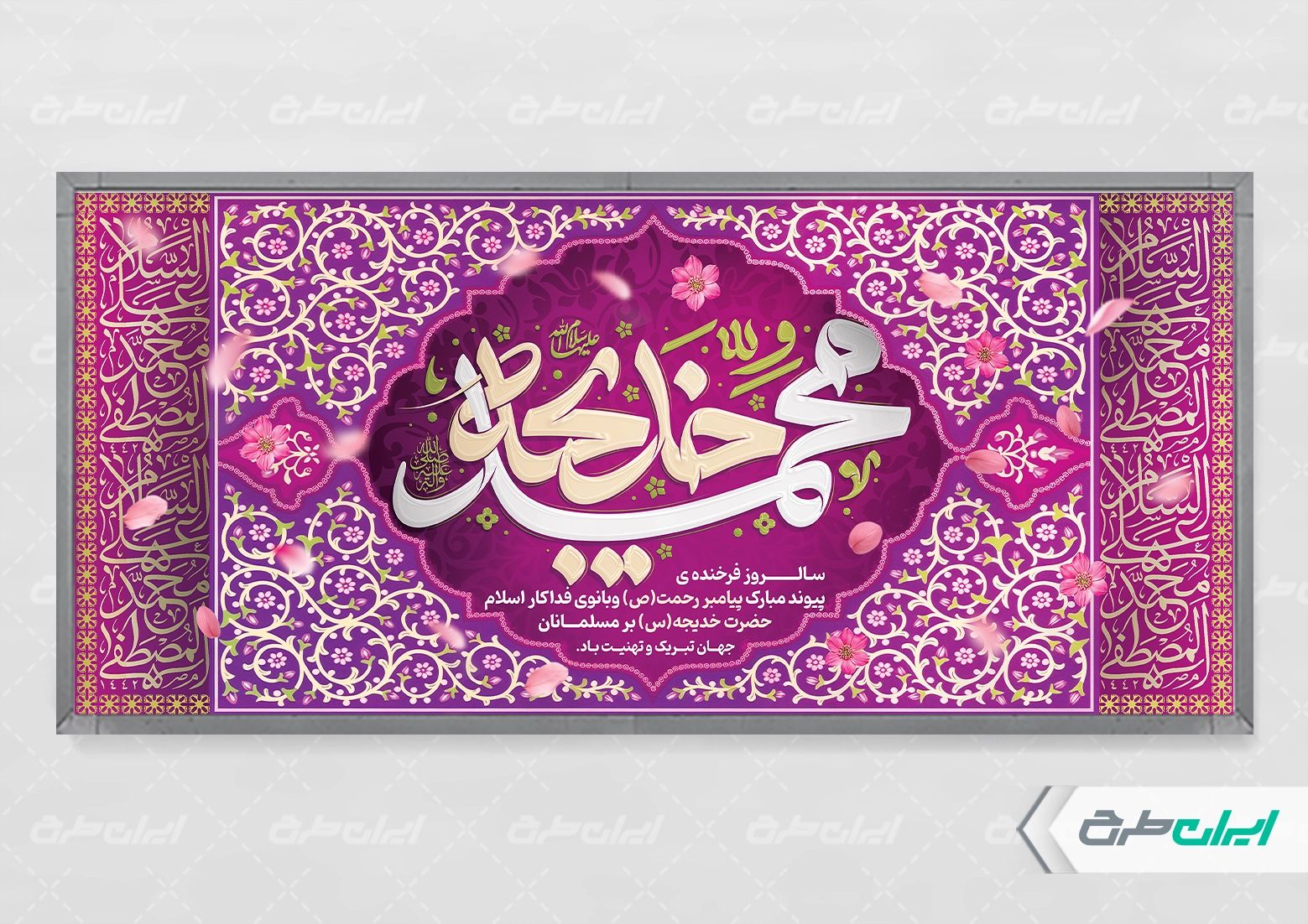 طرح بنر سالروز ازدواج حضرت محمد و حضرت خدیجه (س) شامل: