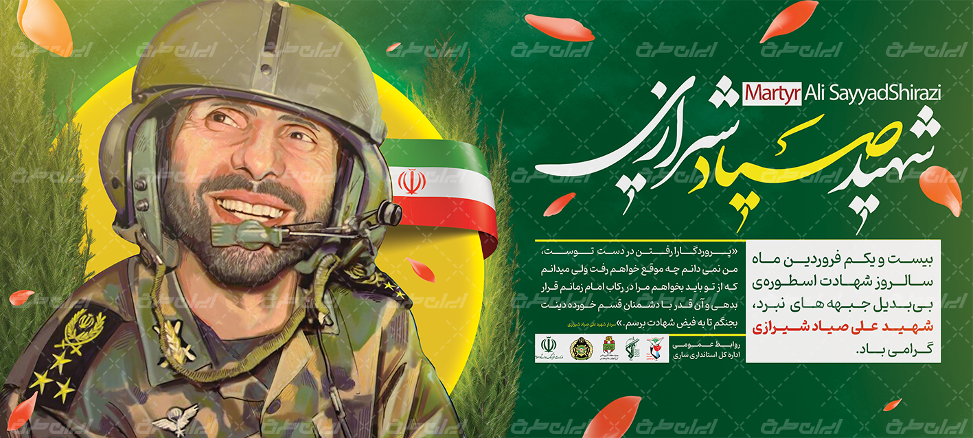 بنر سالروز شهادت صیاد شیرازی، توسط تیم حرفه ای ایران طرح جهت استفاده کاربران سایت طراحی و به صورت لایه باز در دسترس کاربران قرار گرفته است.