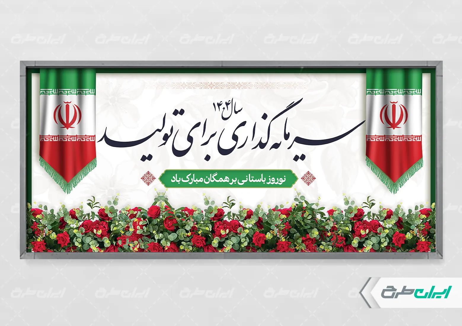 مشخصات فنی بنر شعار سال 1404 سرمایه گذاری برای تولید