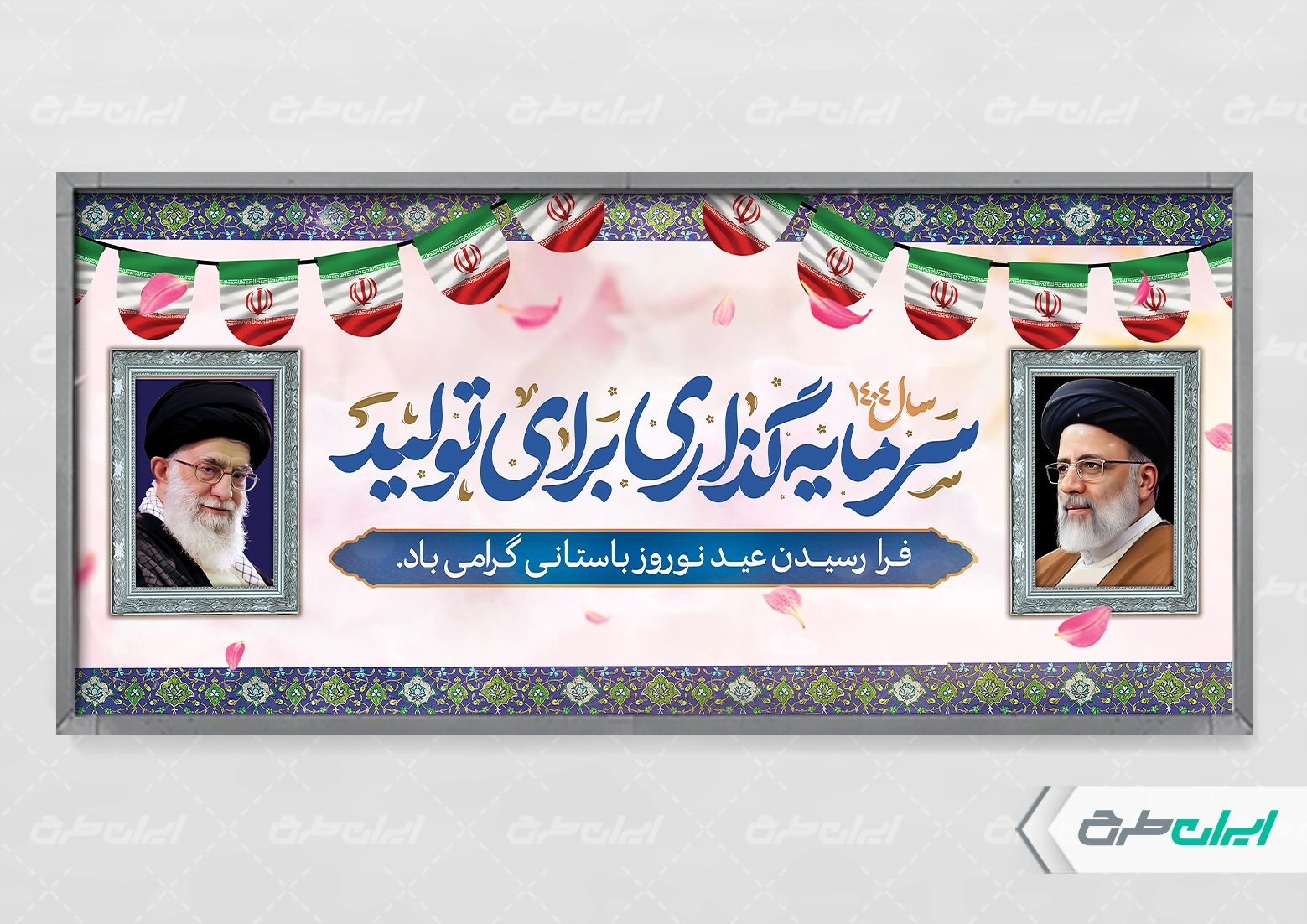 تصویر رهبری و متن شعار سال سرمایه گذاری برای تولید، که توسط تیم ایران طرح طراحی شده است.