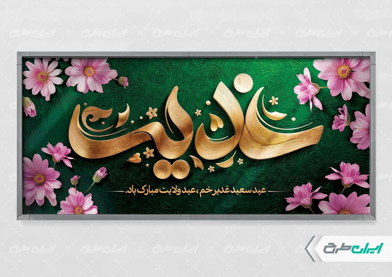 تایپوگرافی غدیر، طرح گل و متن تبریک عید غدیر خم می باشد که توسط طراحان ایران طرح در نرم افزار فتوشاپ طراحی شده است.