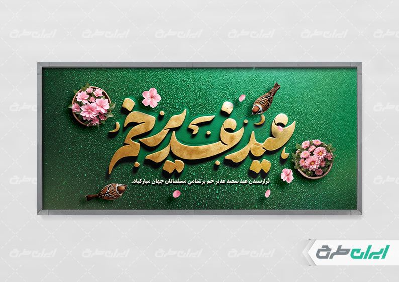 تایپوگرافی عید غدیر خم، طرح گل و متن تبریک عید غدیر خم می باشد که توسط طراحان ایران طرح در نرم افزار فتوشاپ طراحی شده است.