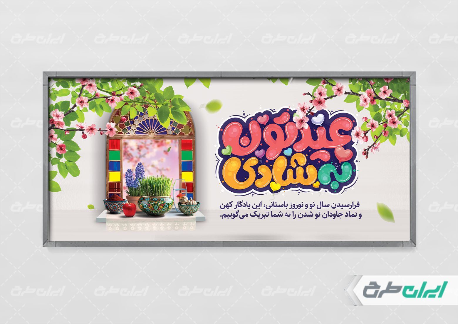- طراحی بنر با استفاده از عناصر با کیفیت و تایپوگرافی عیدتون به شادی