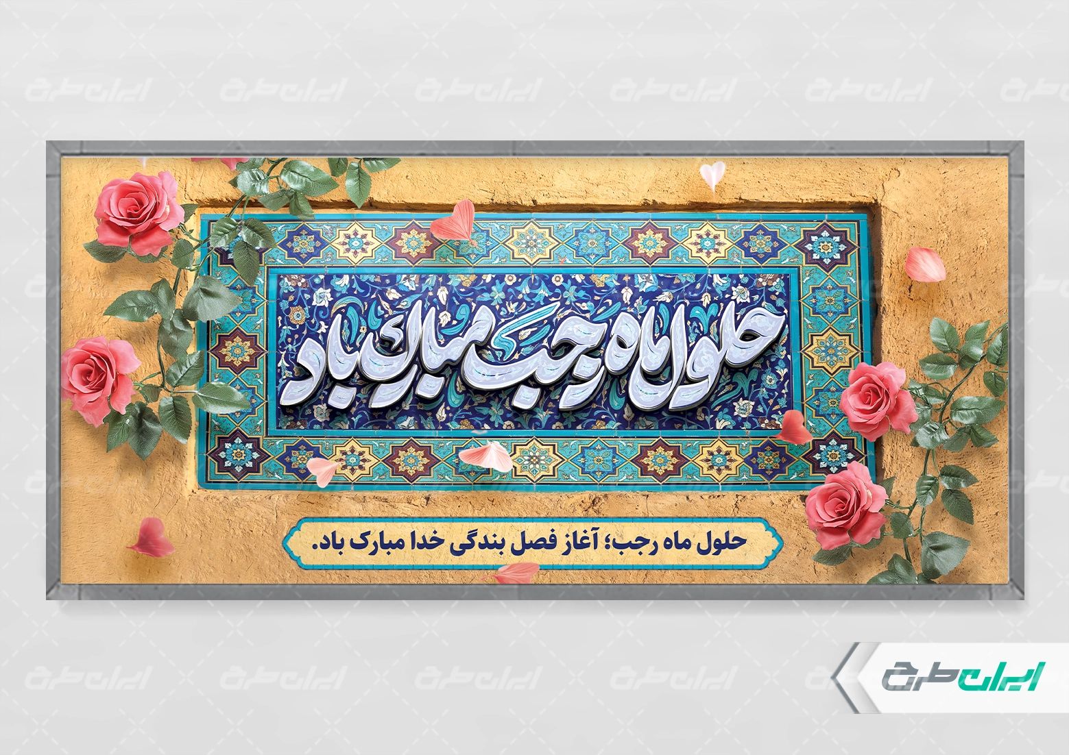 بنر ماه رجب، توسط تیم حرفه ای ایران طرح جهت استفاده کاربران سایت طراحی و به صورت لایه باز در دسترس کاربران قرار گرفته است.