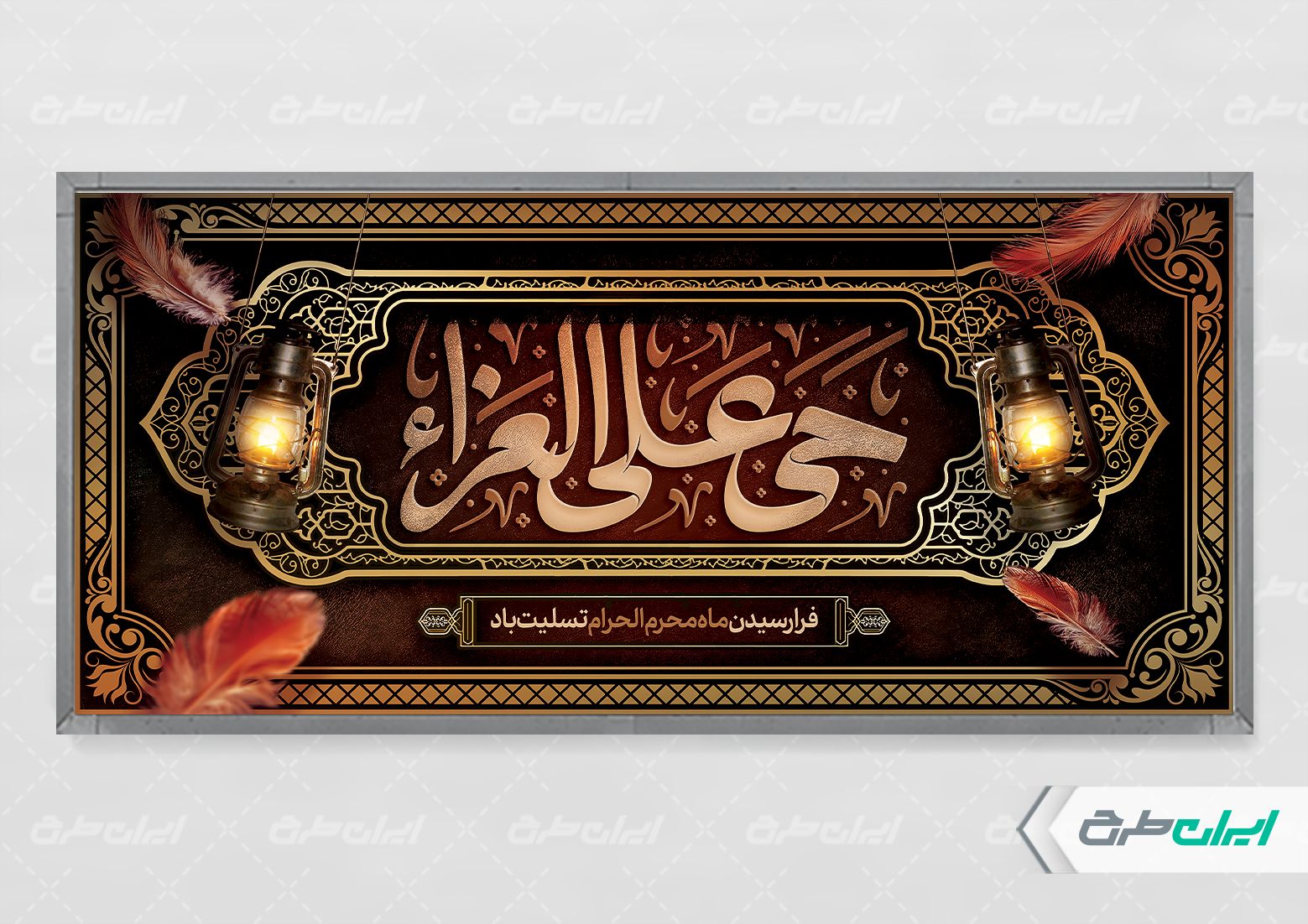 طرح پلاکارد محرم با تایپوگرافی حی علی العزا
