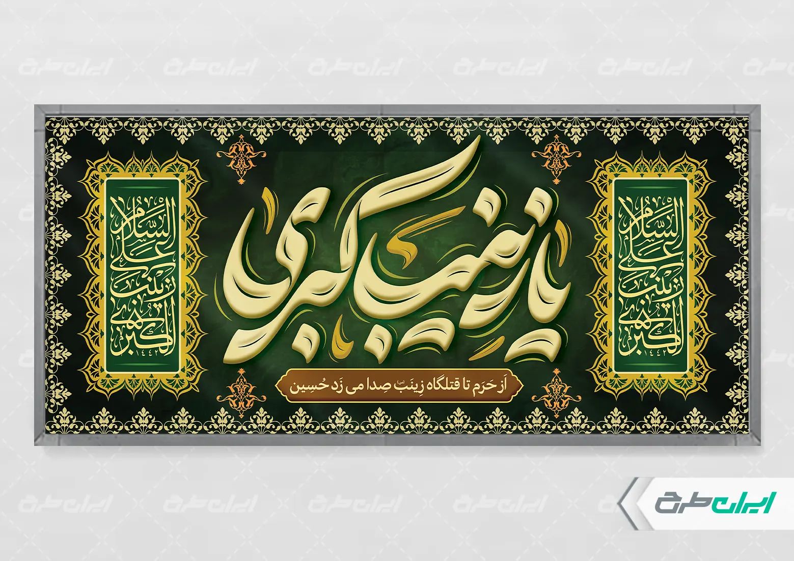 تایپوگرافی یا زینب کبری، تذهیب و متن تسلیت ماه محرم می باشد که توسط طراحان ایران طرح در نرم افزار فتوشاپ طراحی شده است.