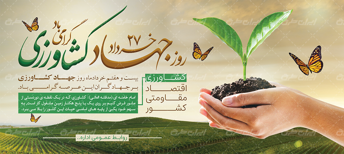بنر روز جهاد کشاورزی، توسط تیم حرفه ای ایران طرح جهت استفاده کاربران سایت طراحی و به صورت لایه باز در دسترس کاربران قرار گرفته است.