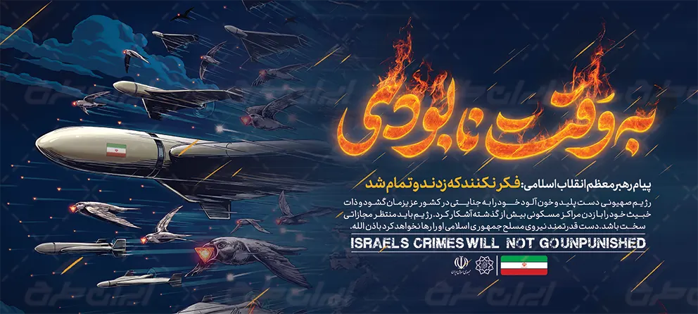 تایپوگرافی به وقت نابودی و متن مرتبط با این حمله موشکی است که توسط تیم خلاق ایران طرح طراحی شده است.
