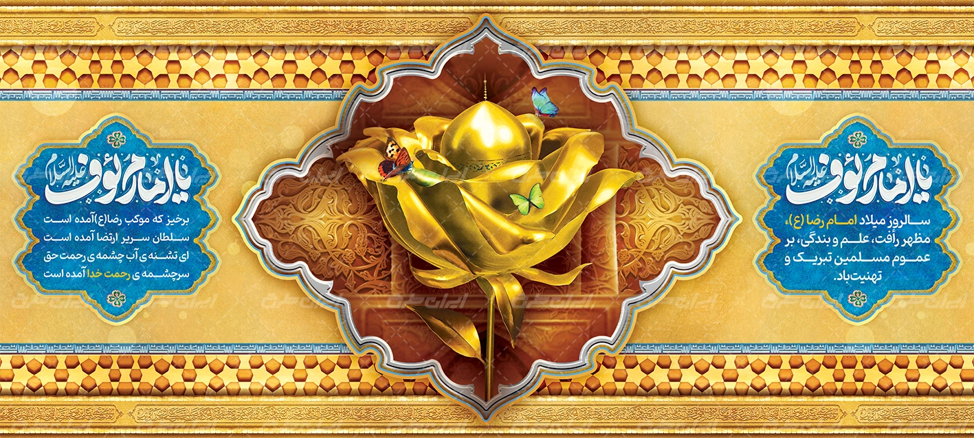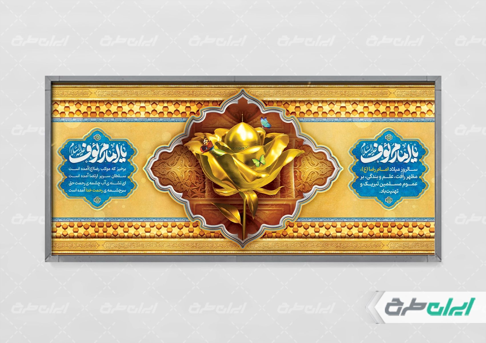 بنر ولادت امام رضا (ع)، توسط تیم حرفه ای ایران طرح جهت استفاده کاربران سایت طراحی و به صورت لایه باز در دسترس کاربران قرار گرفته است.