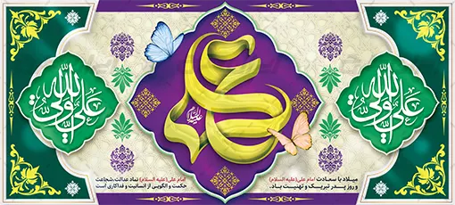 - طراحی بنر با استفاده از تذهیب در طرح بنر ولادت امام محمد علی