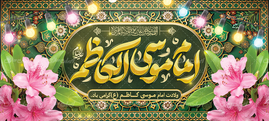 طرح بنر ولادت امام موسی کاظم (ع) شامل: