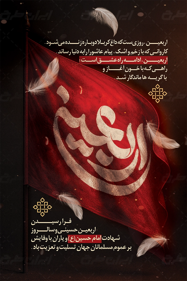 تذهیب و متن تسلیت اربعین حسینی می باشد که توسط طراحان ایران طرح در نرم افزار فتوشاپ طراحی شده است.