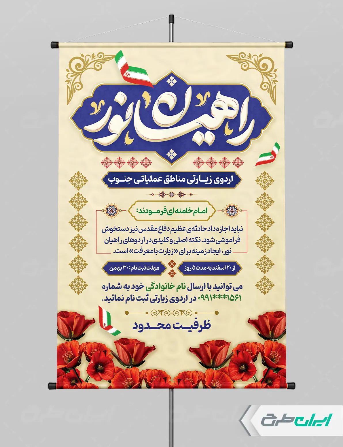 طرح بنر راهیان نور ، توسط تیم حرفه ای ایران طرح جهت استفاده کاربران سایت طراحی و به صورت لایه باز در دسترس کاربران قرار گرفته است.