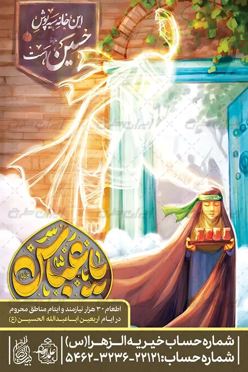 - استفاده از تایپوگرافی یا عباس و متن مرتبط با مراسم عذاداری اربعین حسینی