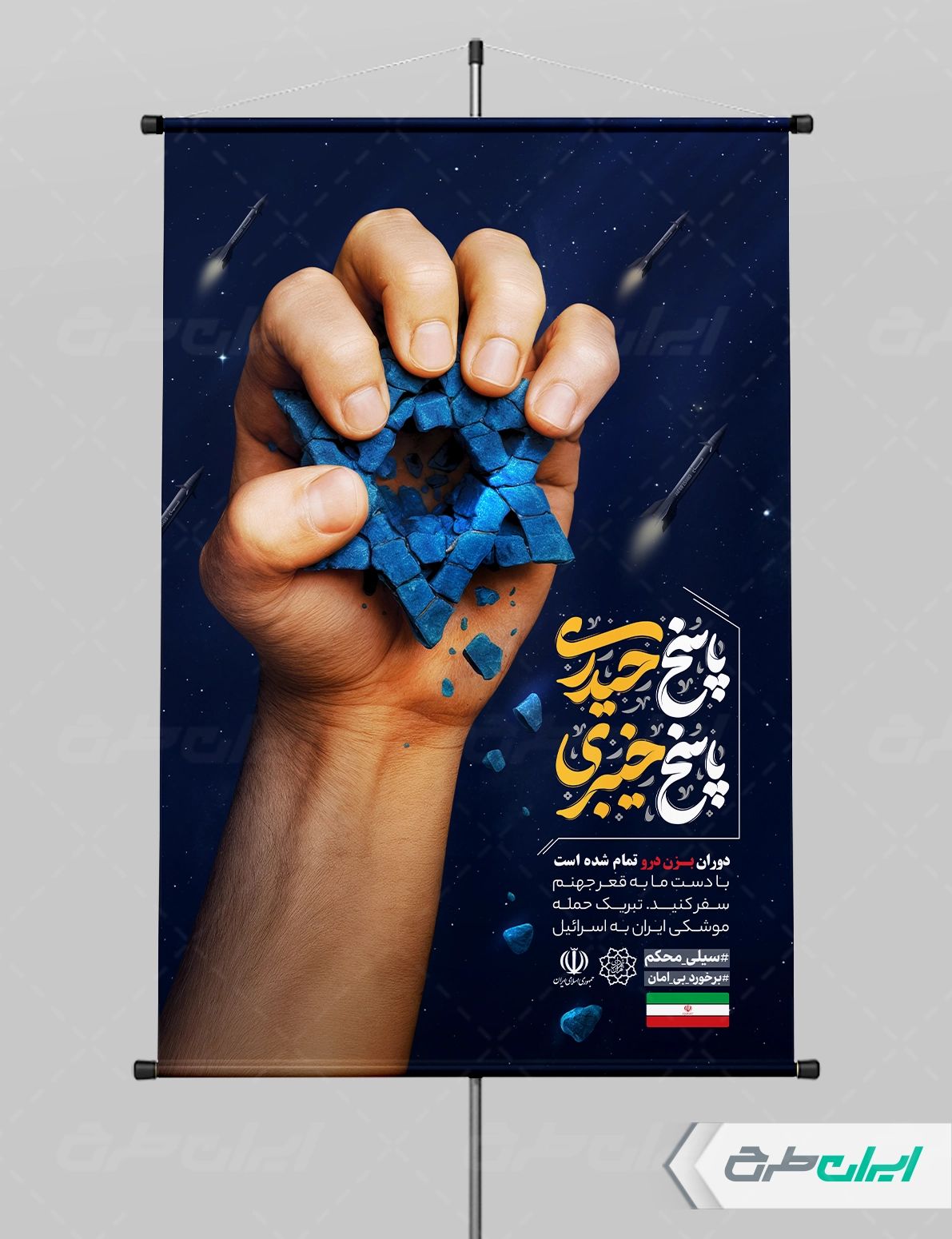 تایپوگرافی پاسخ حیدری پاسخ خیبری و متن مرتبط با این حمله موشکی است که توسط تیم خلاق ایران طرح طراحی شده است.