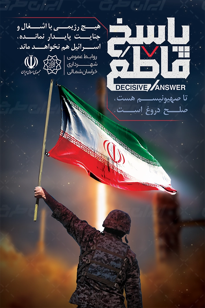 تایپوگرافی پاسخ قاطع و متن مرتبط با این حمله موشکی است که توسط تیم خلاق ایران طرح طراحی شده است.