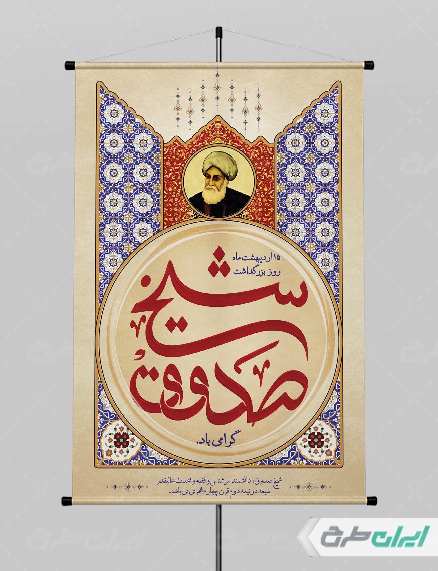 طرح بنر بزرگداشت شیخ صدوق، توسط تیم با تجربه ایران طرح جهت استفاده کاربران سایت طراحی و به صورت لایه باز در دسترس کاربران قرار گرفته است.