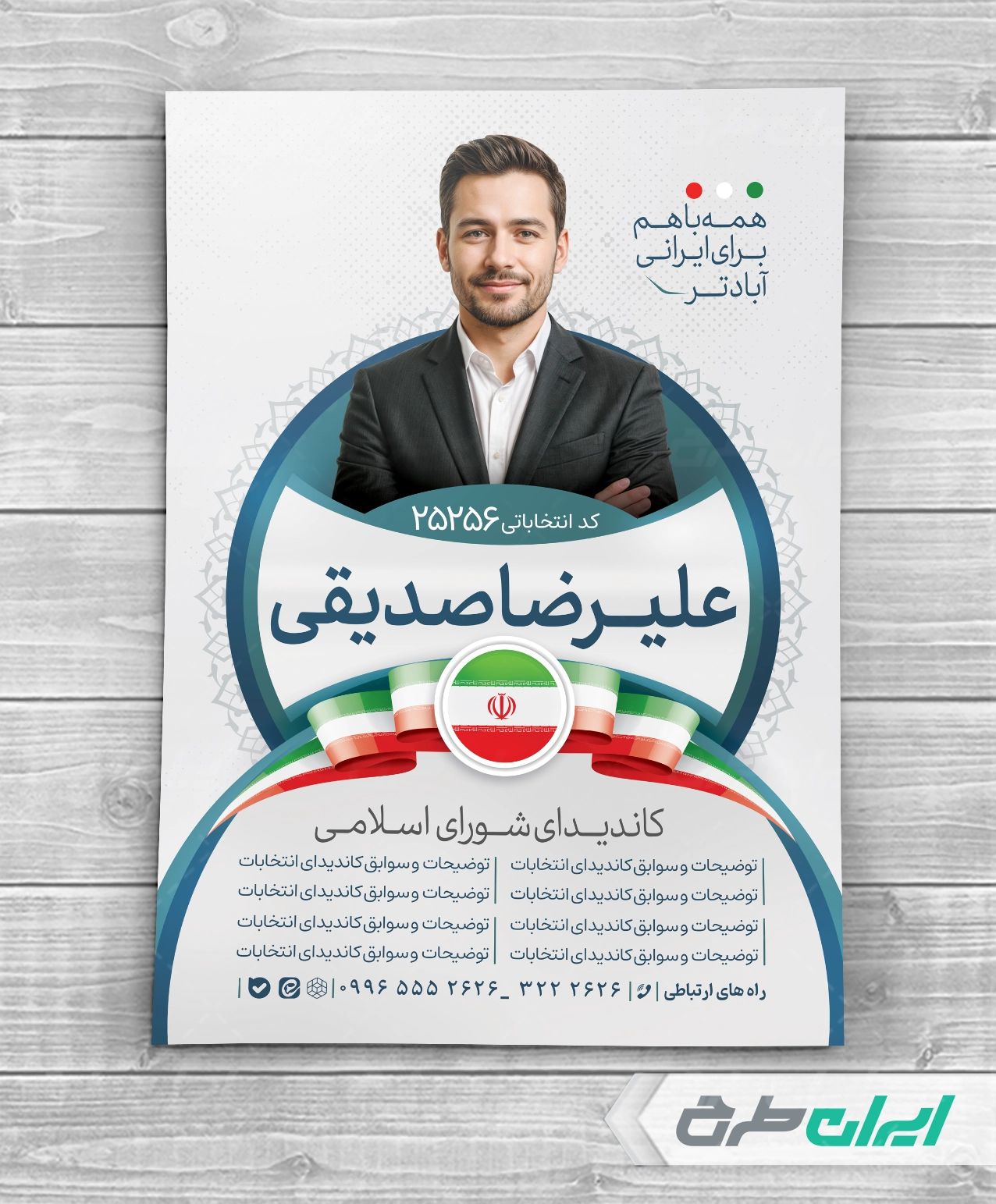 طرح پوستر انتخاباتی شامل: