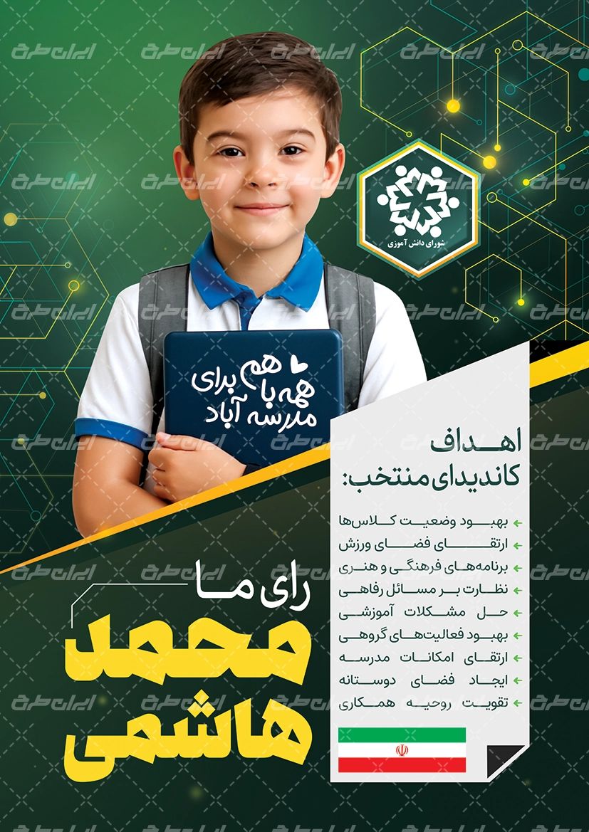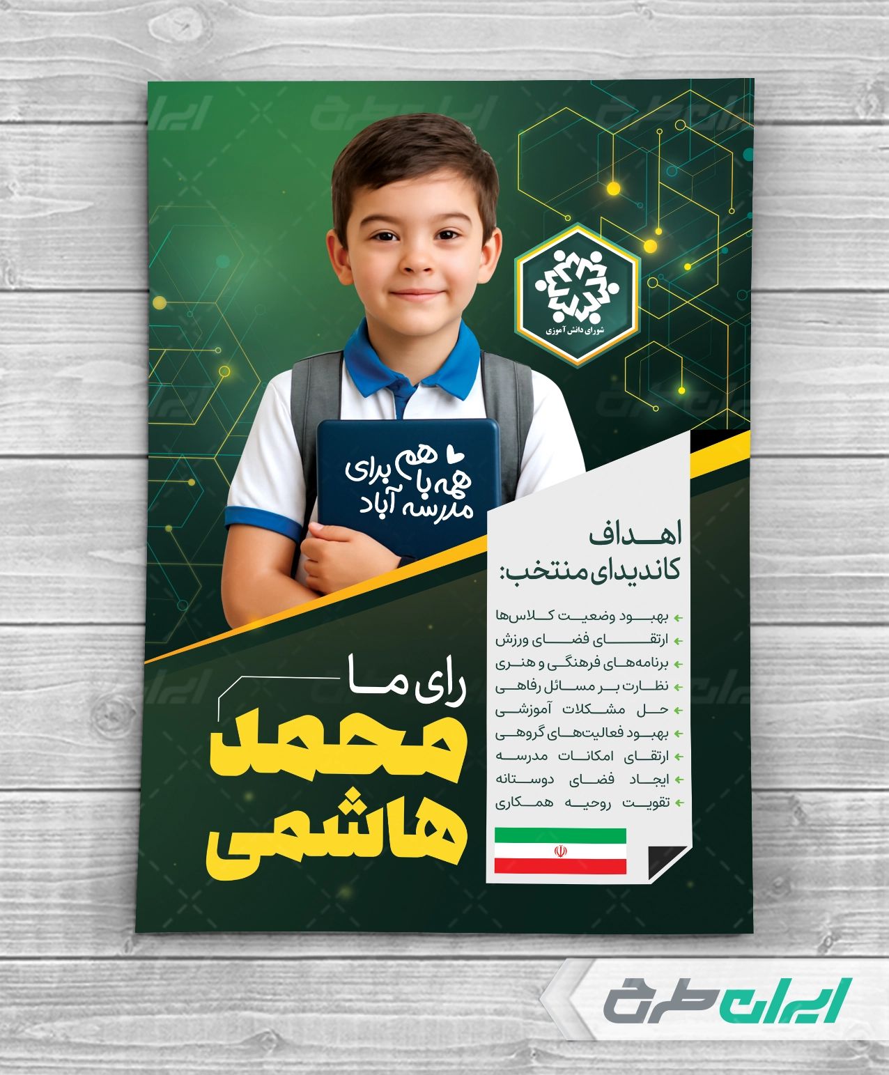 طرح پوستر انتخاباتی شورای مدرسه شامل:
