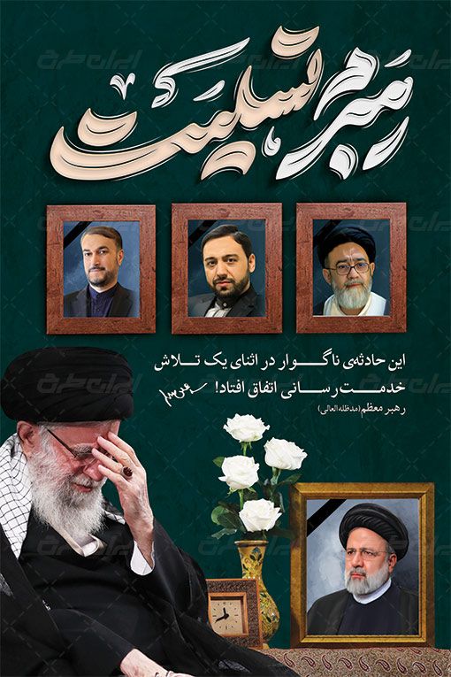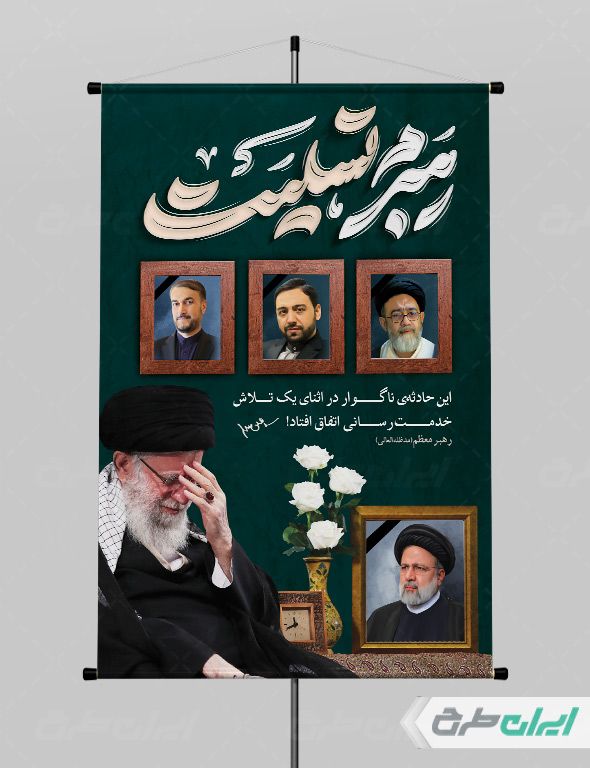 بنر تسلیت شهادت سید ابراهیم رئیسی، توسط تیم حرفه ای ایران طرح جهت استفاده کاربران سایت طراحی و به صورت لایه باز در دسترس کاربران قرار گرفته است.