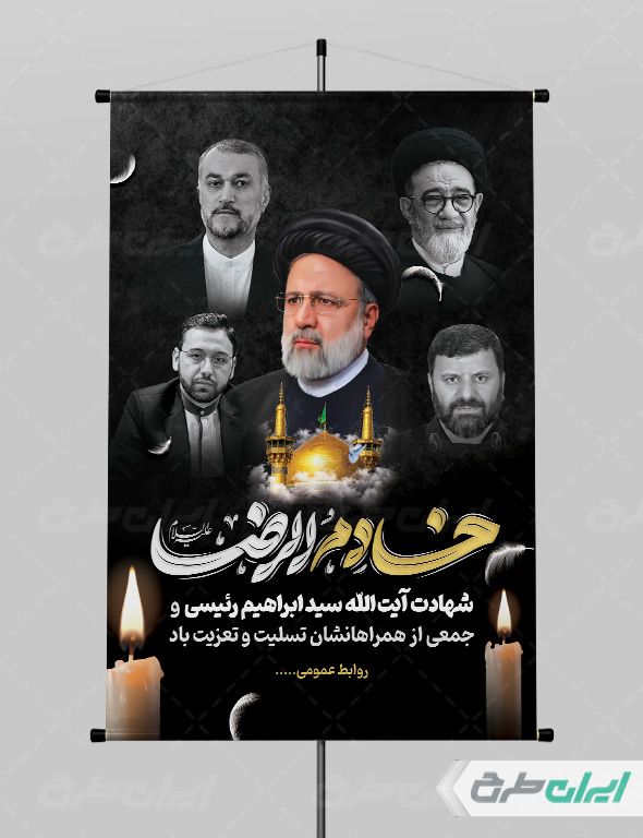 بنر تسلیت شهادت سید ابراهیم رئیسی، توسط تیم حرفه ای ایران طرح جهت استفاده کاربران سایت طراحی و به صورت لایه باز در دسترس کاربران قرار گرفته است.