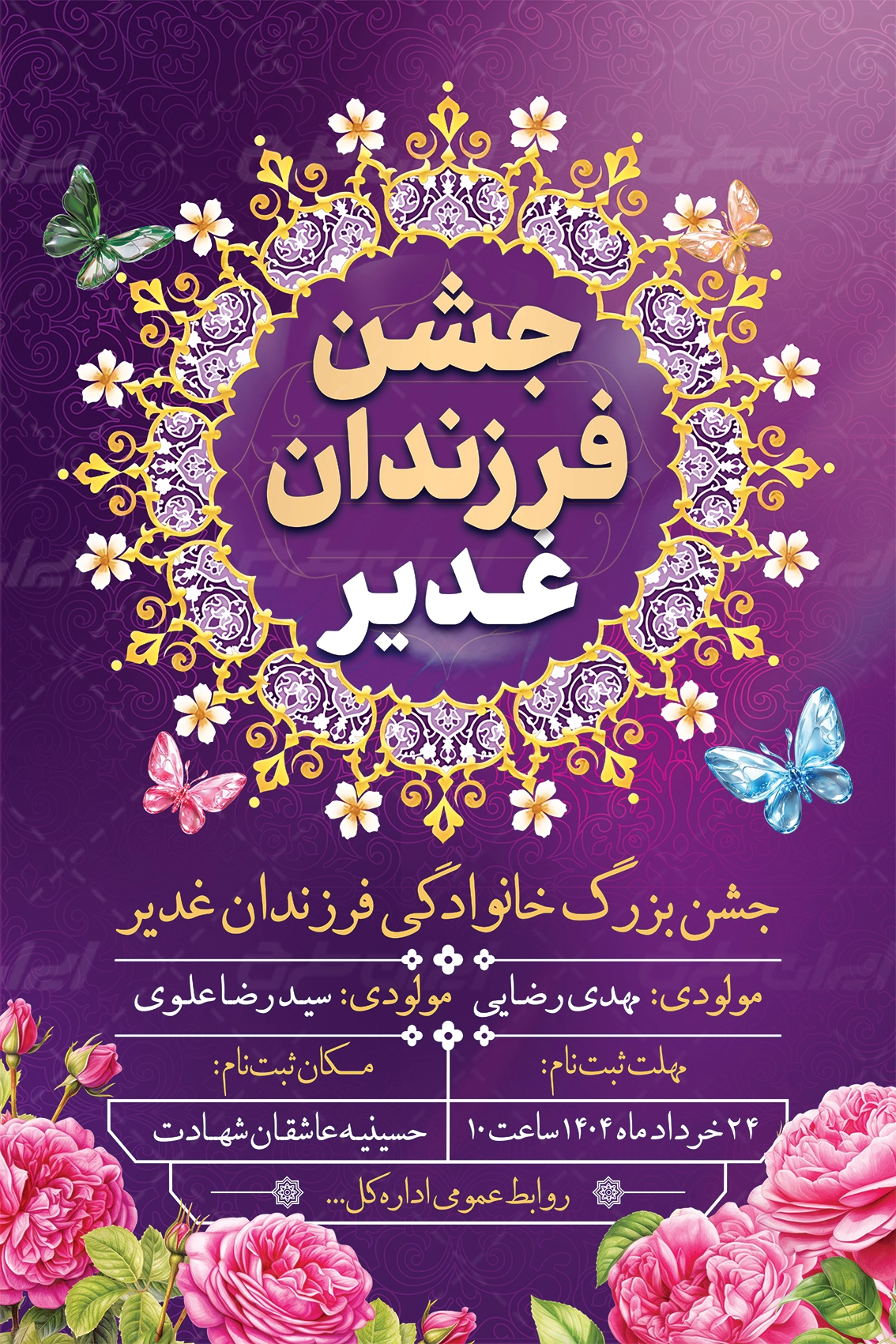 ضمنا به دلیل لایه باز بود طرح بنر عید غدیر می توانید با استفاده از نرم افزار فتوشاپ تغییرات دلخواه خود را اعمال کنید.
