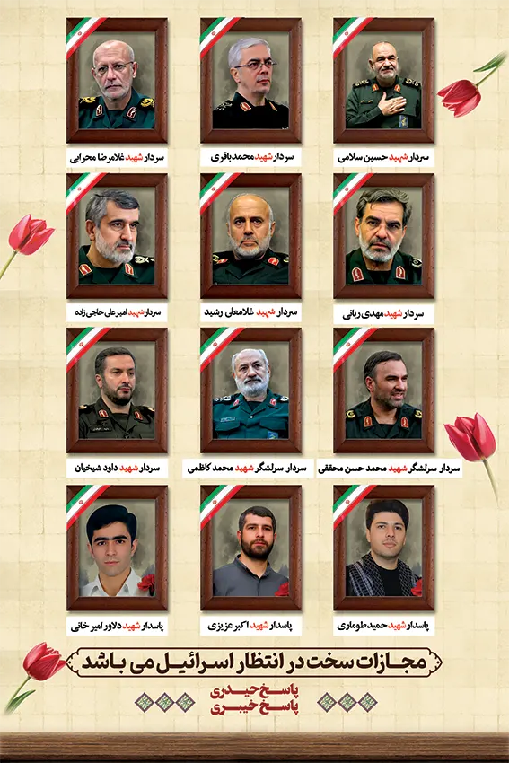 طرح پوستر حمله تروریستی اسرائیل و شهادت فرماندهان سپاه و دانشمندان هسته ای