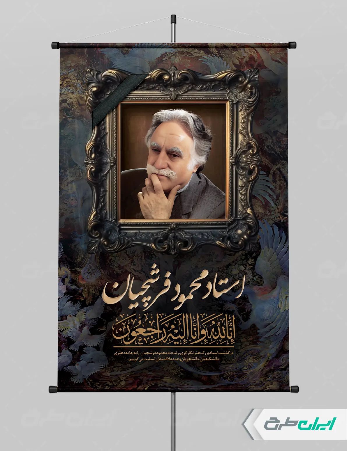 طرح لایه باز بنر درگذشت استاد محمود فرشچیان، به مناسبت این روز ، توسط تیم ایران طرح طراحی و در دسترس کاربران سایت قرار گرفته است.