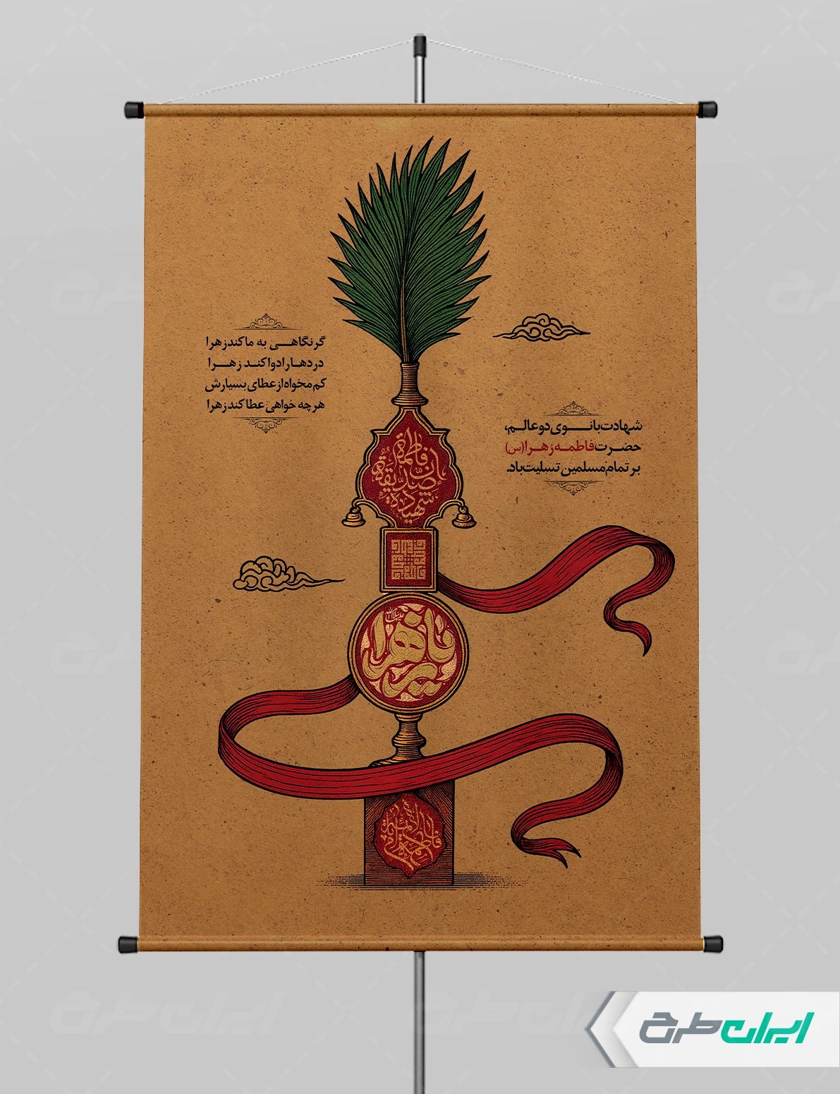 طرح بنر سالگرد شهادت حضرت فاطمه زهرا شامل: