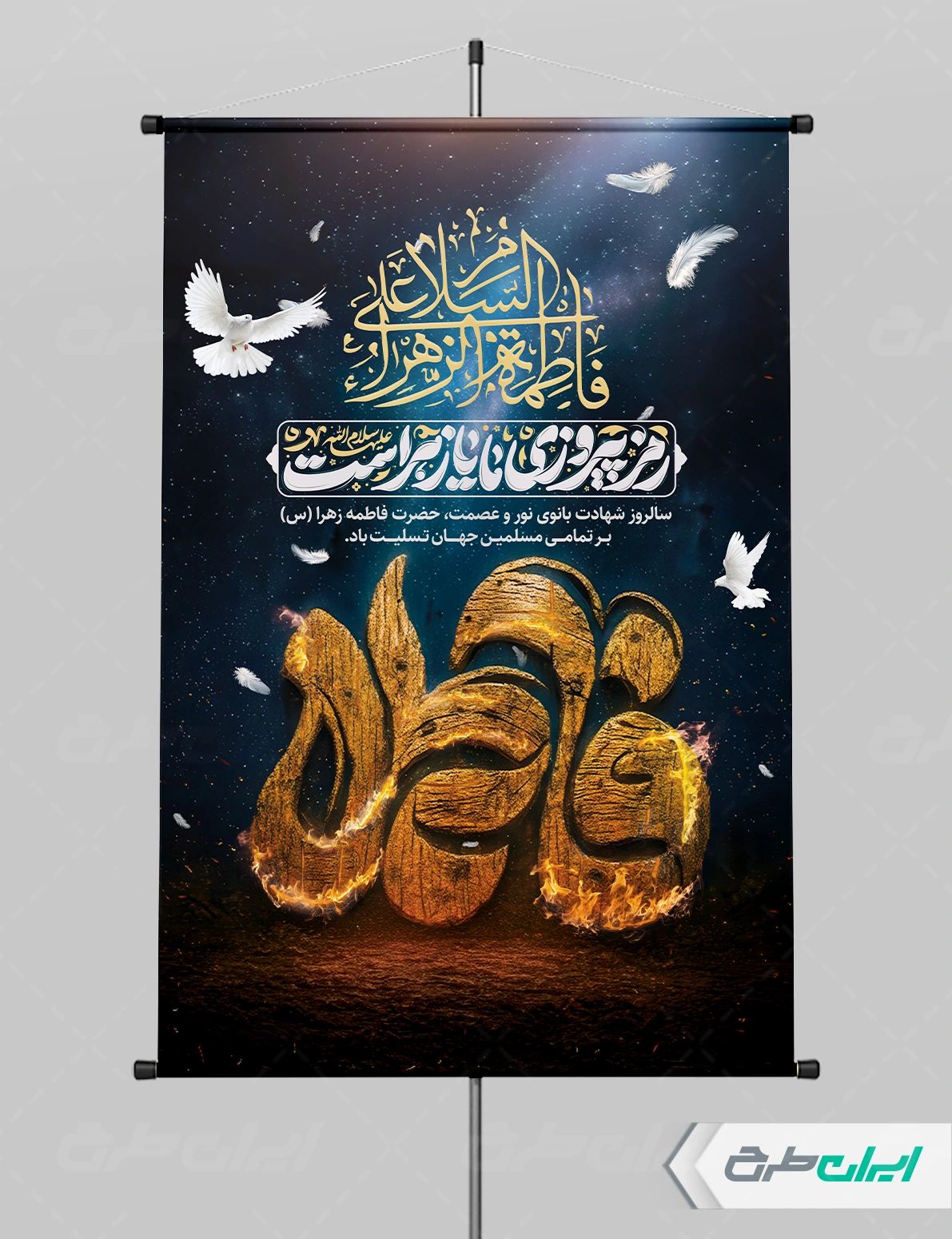 طرح بنر سالگرد شهادت حضرت فاطمه زهرا شامل: