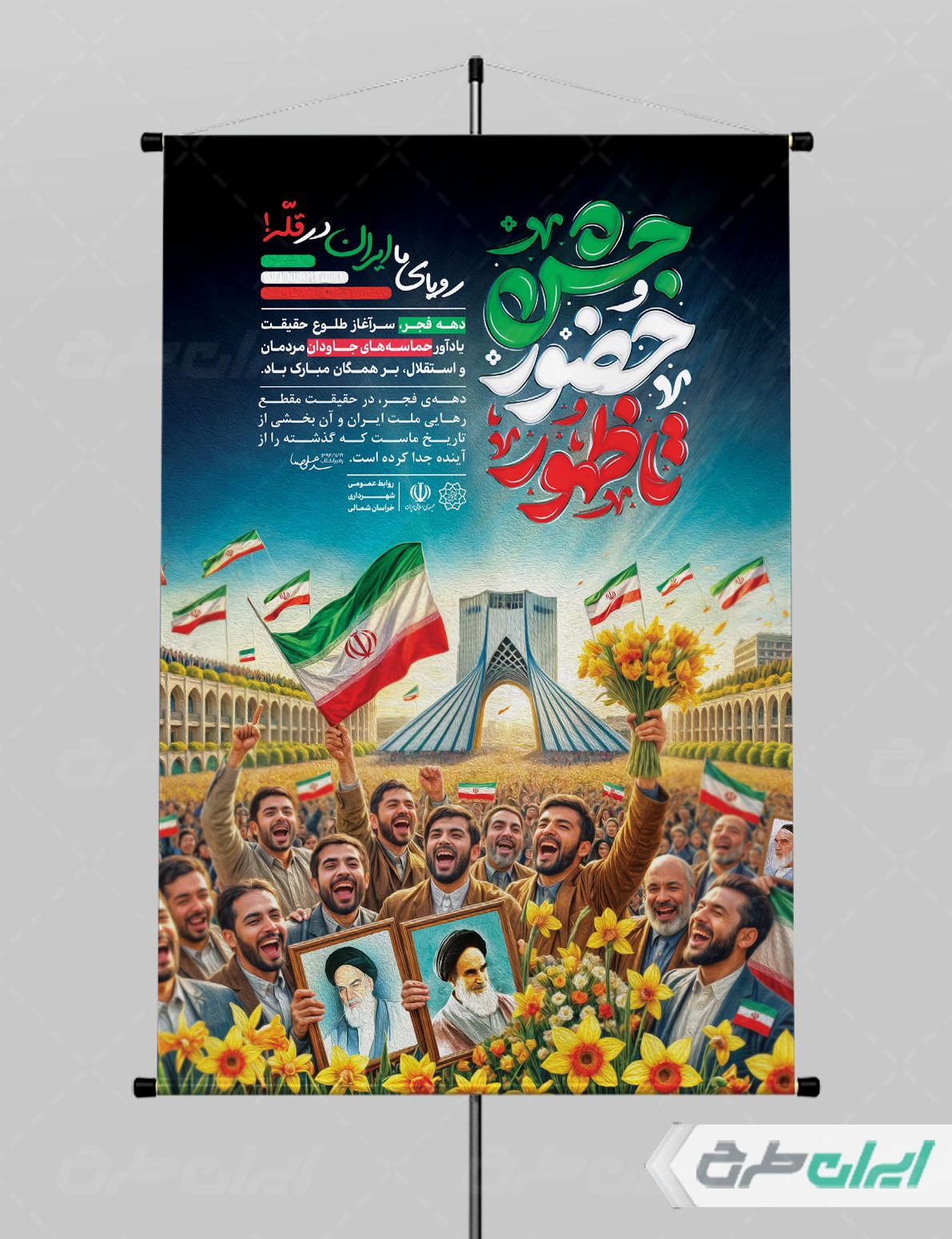 طرح پوستر دهه فجر با تایپوگرافی جشن حضور تا ظهور