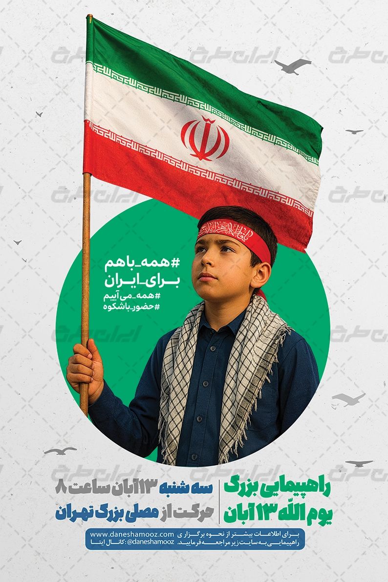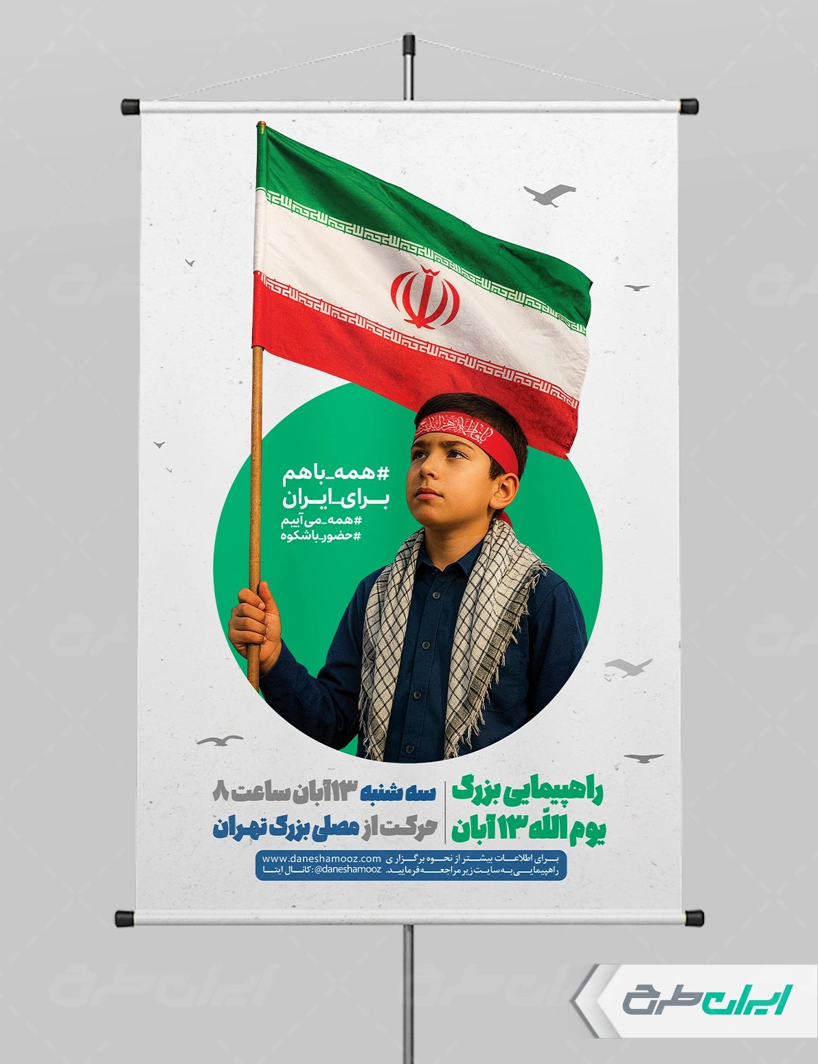 طرح بنر 13 آبان، توسط تیم با تجربه ایران طرح جهت استفاده کاربران سایت طراحی و به صورت لایه باز در دسترس کاربران قرار گرفته است.
