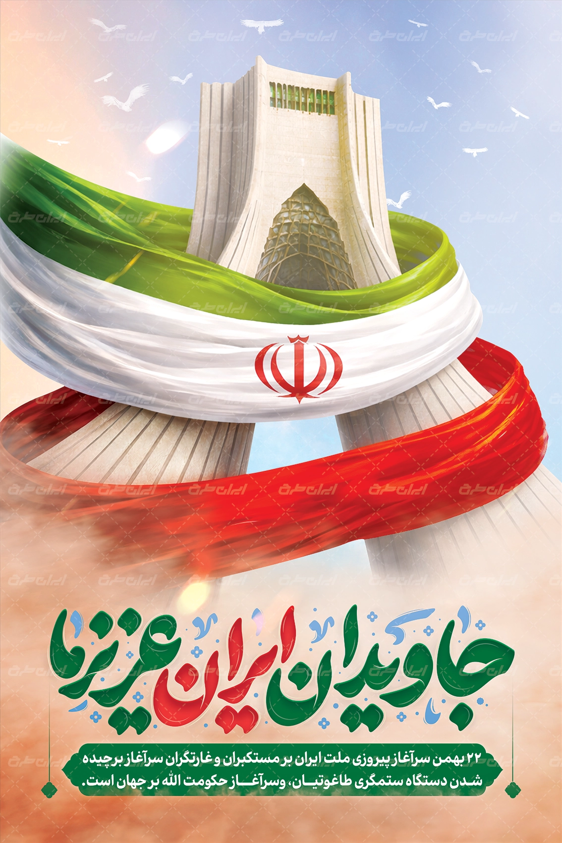 تایپوگرافی جاویدان ایران عزیز ما و متن گرامیداشت دهه فجر می باشد که توسط تیم ایران طرح طراحی شده است.