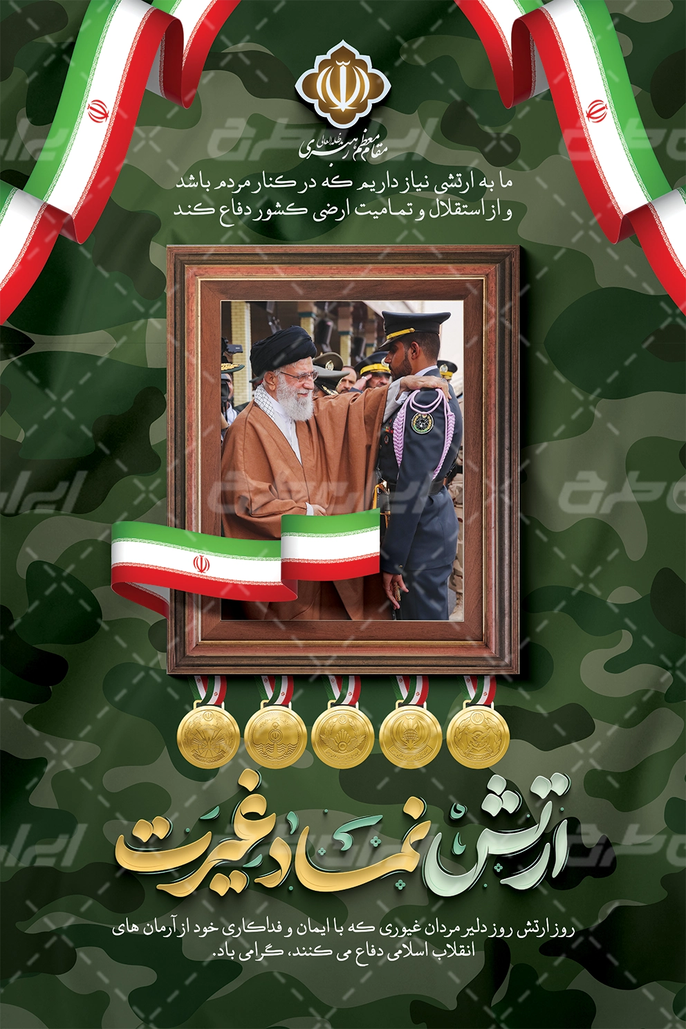 بنر روز ارتش جمهوری اسلامی، توسط تیم حرفه ای ایران طرح جهت استفاده کاربران سایت طراحی و به صورت لایه باز در دسترس کاربران قرار گرفته است.