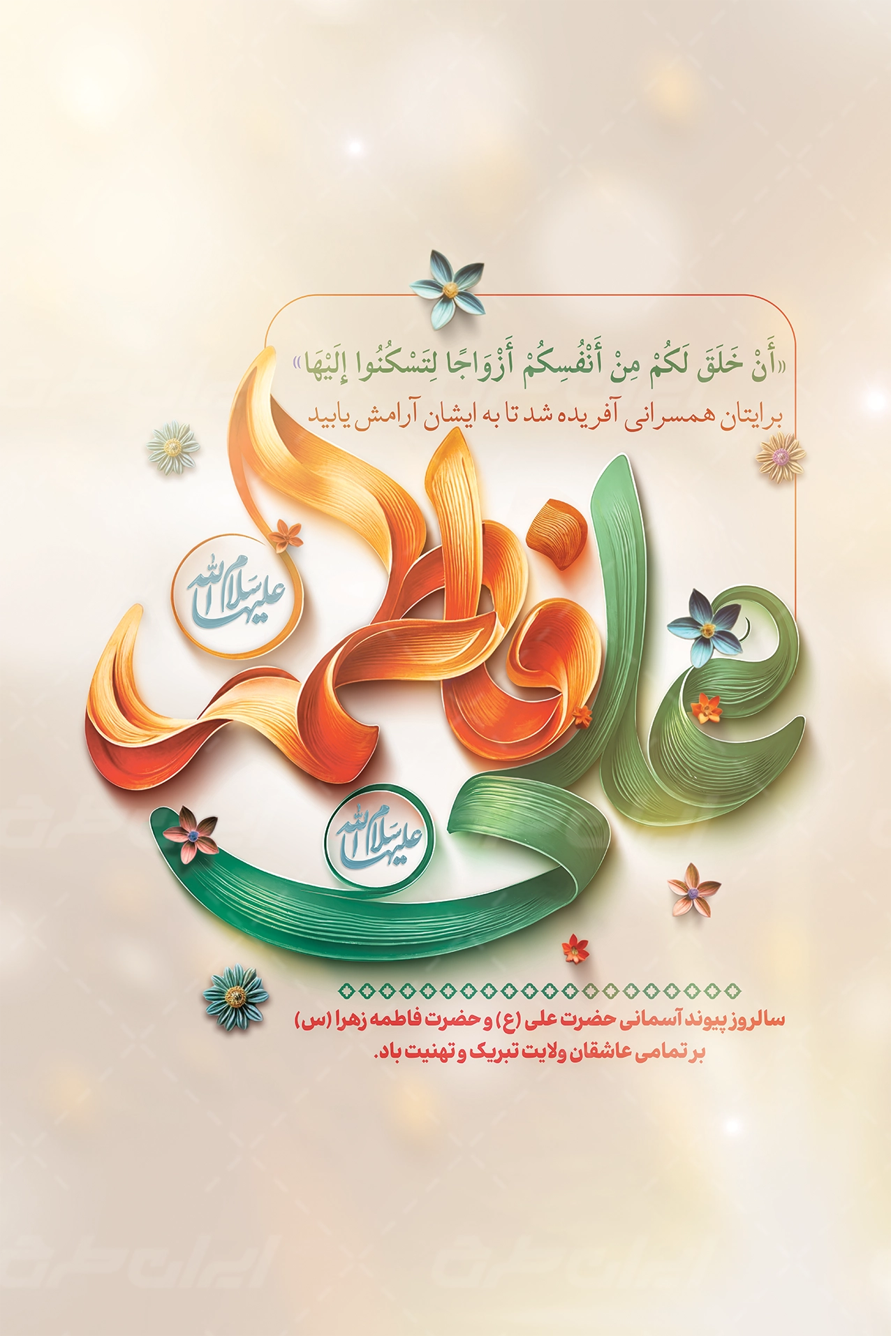 طرح پوستر روز ازدواج با تایپوگرافی علی فاطمه