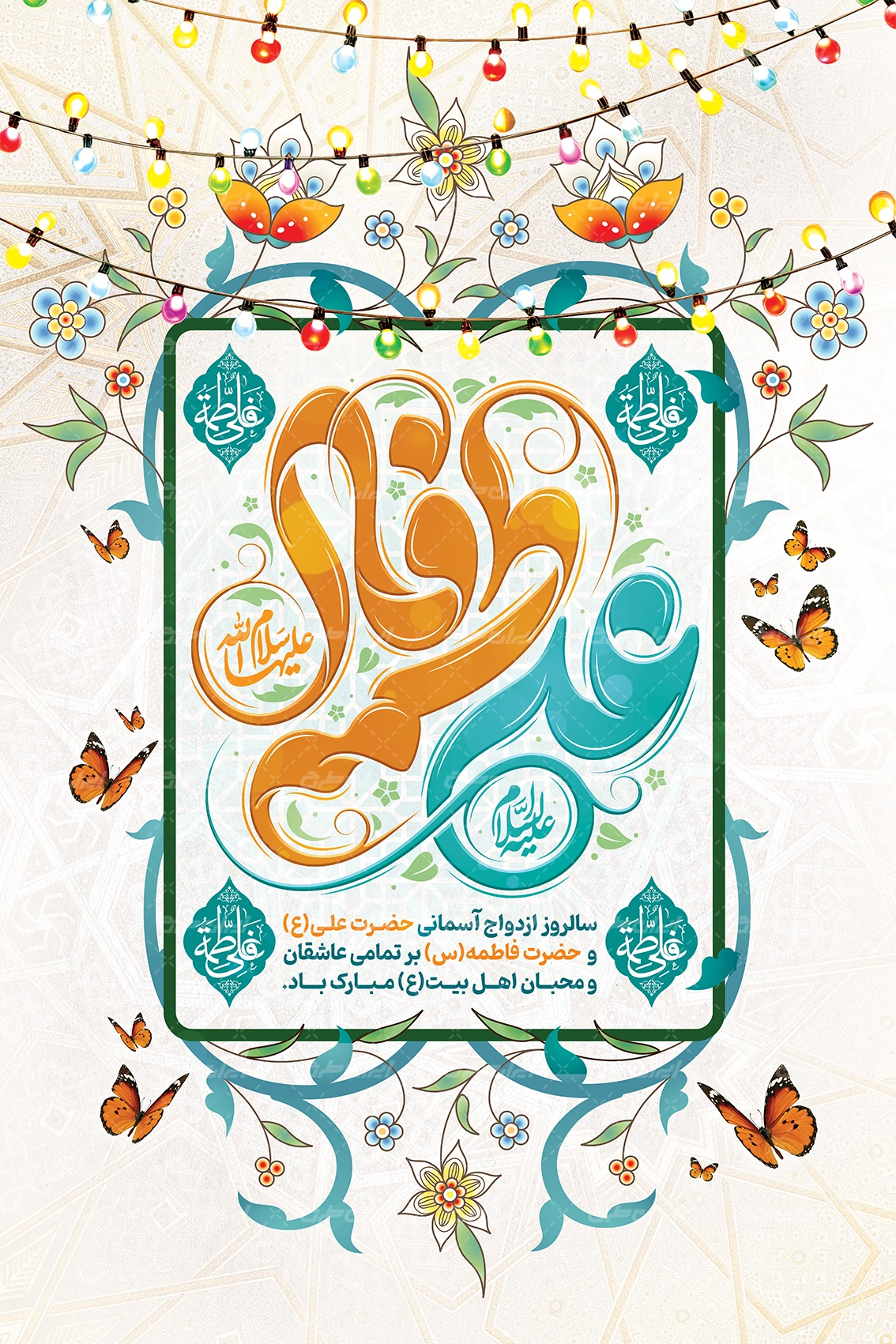تایپوگرافی فاطمه علی و متن تبریک سالروز پیوند امام علی (ع) و حضرت فاطمه (س) می باشد که توسط تیم ایران طرح طراحی شده است.