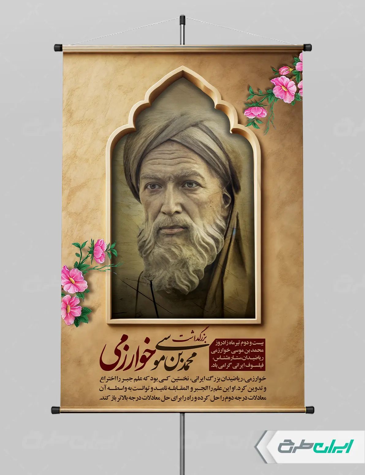 طرح بنر روز بزرگداشت خوارزمی شامل: