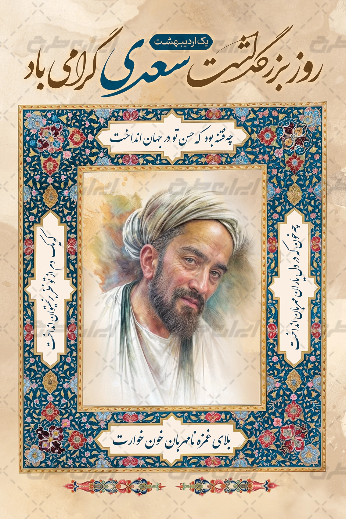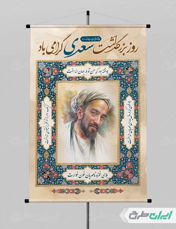 بنر روز بزرگداشت سعدی، توسط تیم حرفه ای ایران طرح جهت استفاده کاربران سایت طراحی و به صورت لایه باز در دسترس کاربران قرار گرفته است.
