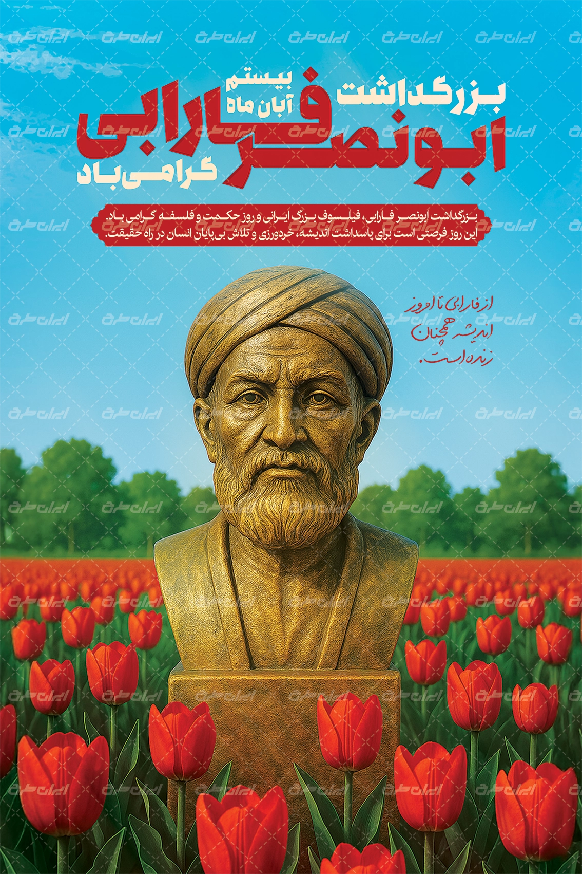 تصویر فارابی و متن گرامیداشت روز بزرگداشت فارابی می باشد که توسط تیم ایران طرح طراحی شده است.