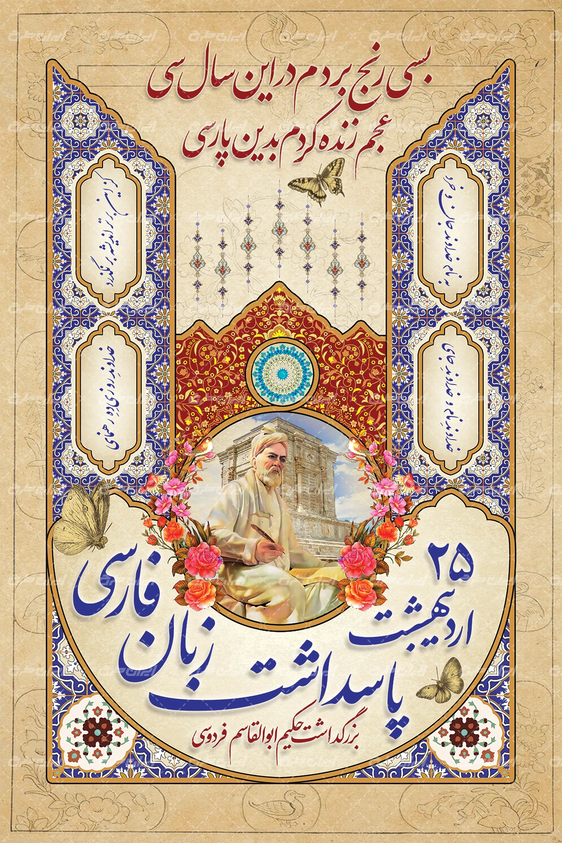 - استفاده از طرح گل و متن گرامیداشت روز فردوسی در طرح بنر