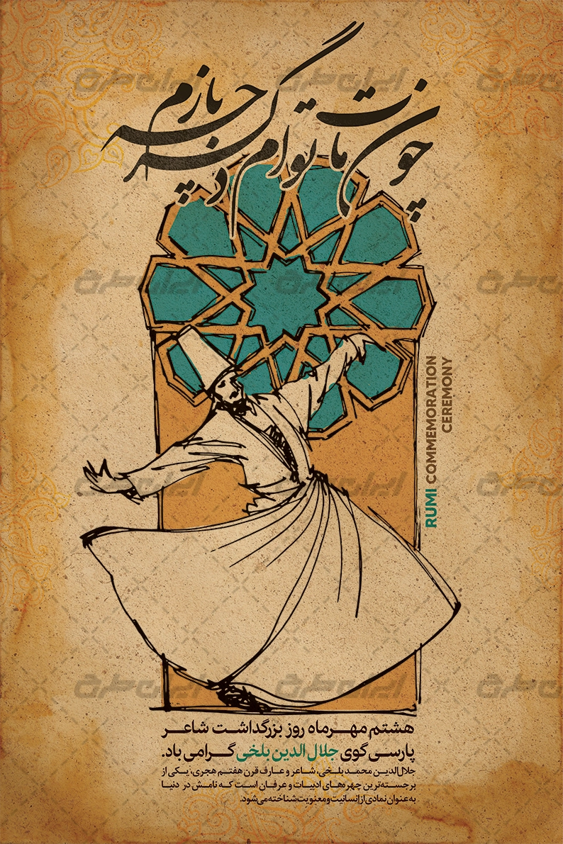 طرح پوستر روز بزرگداشت مولوی شامل: