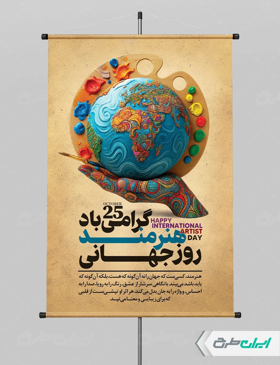 بنر لایه باز روز جهانی هنرمند، توسط تیم با تجربه ایران طرح جهت استفاده کاربران سایت طراحی و به صورت لایه باز در دسترس کاربران قرار گرفته است.