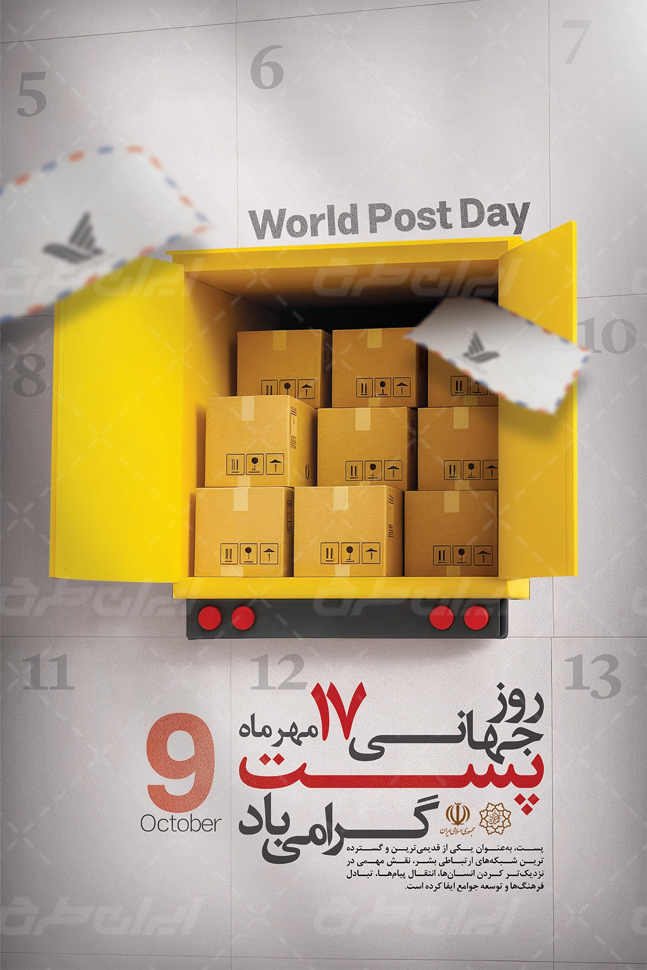 صندوق پست و متن گرامیداشت روز جهانی پست میباشد که توسط تیم خلاق ایران طرح طراحی شده است.