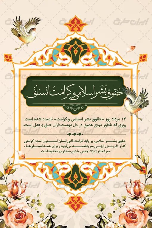 تصویر مرتبط و متن گرامیداشت روز حقوق بشر اسلامی و کرامت انسانی می باشد که توسط تیم ایران طرح طراحی شده است.
