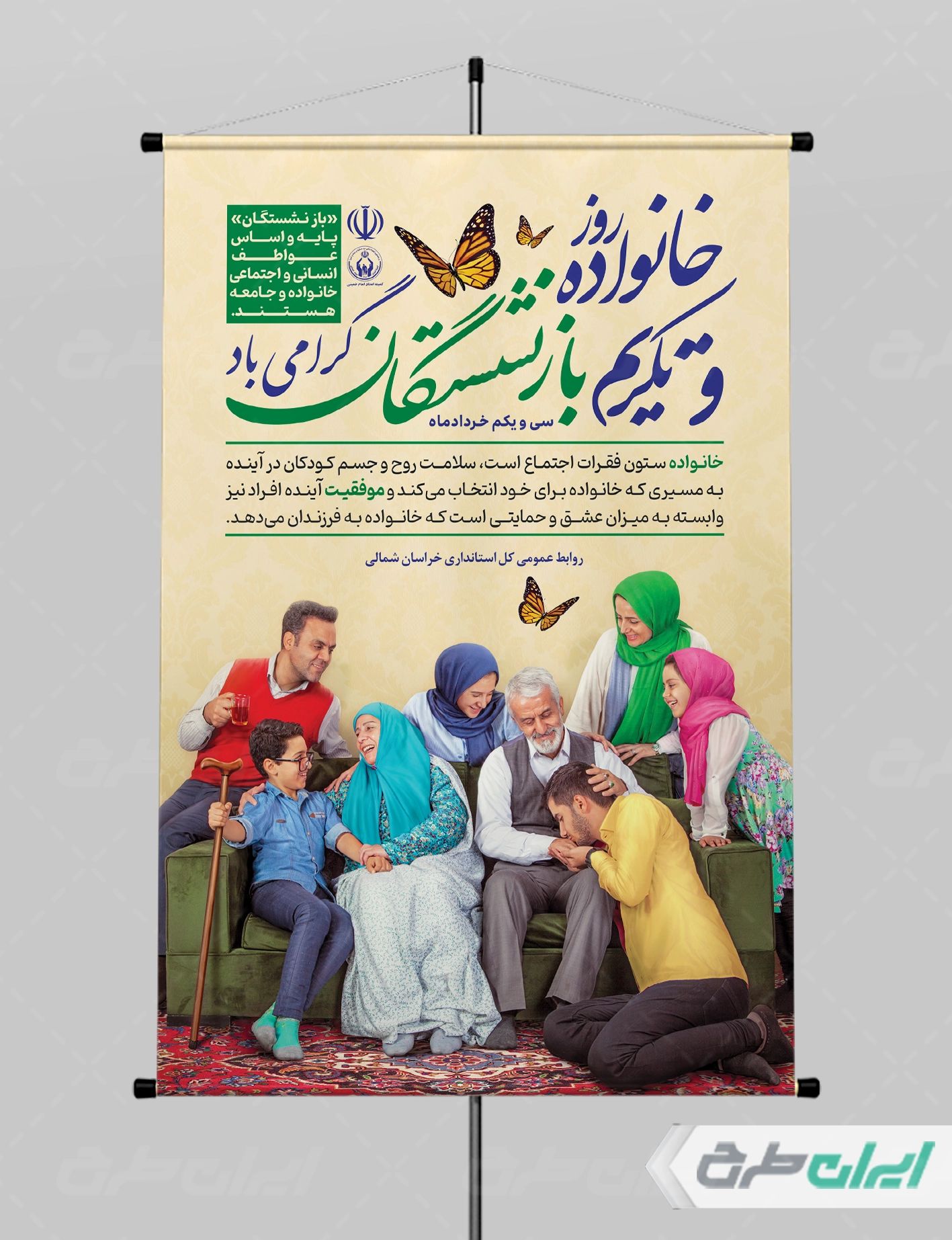 تصویر خانواده و متن گرامیداشت روز خانواده و تکریم بازنشستگان می باشد که توسط تیم ایران طرح طراحی شده است.