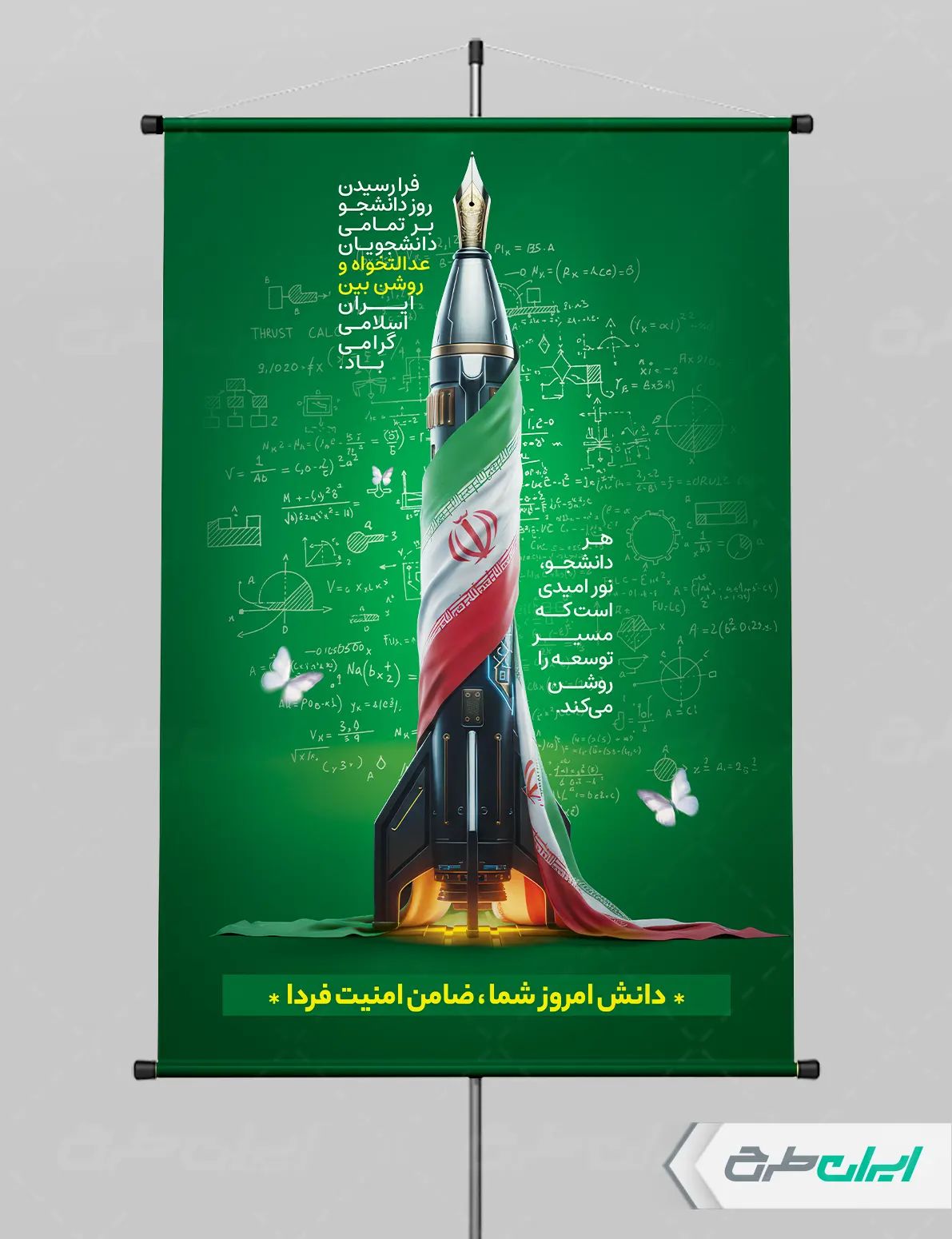 بنر لایه باز گرامیداشت روز دانشجو، توسط تیم حرفه ای ایران طرح جهت استفاده کاربران سایت طراحی و به صورت لایه باز در دسترس کاربران قرار گرفته است.