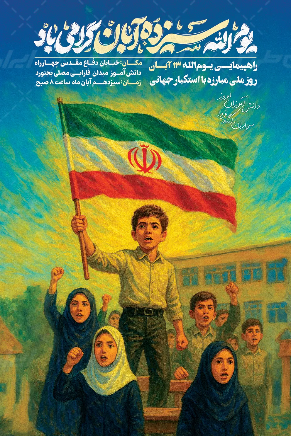 طرح پوستر روز دانش آموز با تایپوگرافی یوم الله سیزده آبان گرامی باد